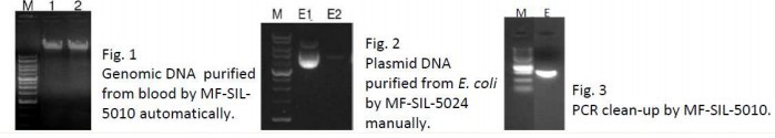 | 血液 | 200ul 全血 | MF-SIL-5010 | 自動 | >5ug 基因組DNA/50ul Beads,F(xiàn)ig.1 |