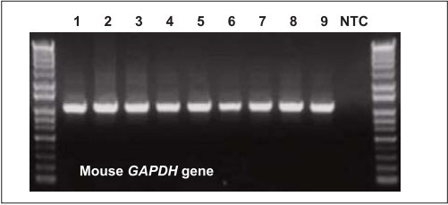 圖2.從裂解的各種小鼠組織/器官直接PCR結(jié)果。1.心 2.肝 3.大腸 4.小腸 5.腎 6.胃