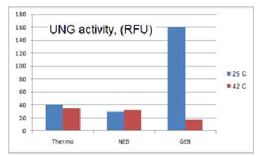 GEB的UNG在25°C時具有很高的活性,而在42°C時則失去活性